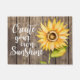 Pretty floral doormat featuring watercolor sunflower with inspirational quote. The motivational quote says "Create your own Sunshine." The background is wood texture. Rustic and country design.