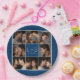 Navy Blue and White background - Use 8 square photos to create a unique and personal anniversary gift. Add the bride and groom's initials and date. If you need to adjust the pictures or monograms, click on the customise tool to make changes.
