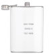 The flask itself is fine. It’s a cheap flask, obviously bought in bulk, however am prepared to overlook that. Given that it is a personalized item, I would have liked to have seen gift boxing instead of the generic packaging. Terrible printing, and/or quality. It’s a cheap, tacky vinyl. It is not cut straight and is also applied in a way that it is overhanging the bottom, causing the glue to catch on items and it will eventually roll and tear, damaging the wrap.