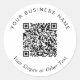 Modern promotional round sticker for your business or organisation. Input your website's URL address to easily create your own scannable QR code, and add two lines of text, such as your business name and slogan.