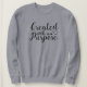 Created With A Purpose in black typography with a curved arrow. This design is based on Ephesians 2:10. God created you with a purpose in mind. Wear this sweatshirt to remind you that you matter and God has a good plan for you. It would make a wonderful encouraging gift for any occasion. This design is available in different styles and colorways- see the customise section.It is also available in white typography.