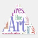 Words inspiring creativity in a designer pastel world cloud.