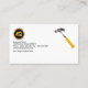 Overleaf, you have a faux gold logo at the top left corner of the card. This is followed by the contact details and a slogan option. Towards the upper right corner, there is an embedded design of a hammer.