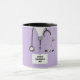 Unique doctor appreciation, graduation, birthday or holiday gift mug, featuring creative hospital scrubs, stethoscope and funny Swiss Army knife. Edit text to add physician's name.