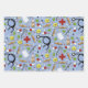Unique medical-themed gift wrap featuring healthcare supplies and flowers pattern on blue background.