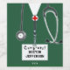 Unique medical school graduation gift labels and grad party decoration featuring green hospital scrubs. Edit text to add doctor or physician assistant's name and the year.