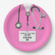Unique doctor party plates featuring medical themed design for medical school grad or medical school graduation party. To personalise edit text to add name.