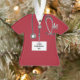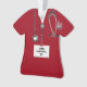 Personalised medical doctor gift featuring red hospital scrubs, stethoscope and funny Swiss Army knife. Edit text to add physician's name.