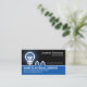 A stylish creative electrical bulb (the tree) border design. It demarcates an upper black layer against its blue counterpart below. Your prestigious name and job title are over at the top with a slogan caption to publicise your services just below. Change the caption remarks to the slogan "your one-stop electrical solution" to suit your own service needs. At the blue layer lies your business name and its contact details.