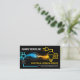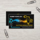 A creative electrical circuit draws power from your prestigious name at the top of the card. The electrical lightning zaps the bulb that contains the "electrician" filament. Below this lies the business name in yellow and its contact details. Near the left wall of the card is a slogan caption to publicise your business. You can change the caption remarks "call me for a free quotation" to suit your own service needs.