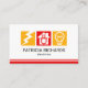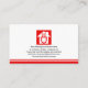 The first icon block is an electrical lightning, the second is a power plug inside a home and the final one, a light bulb. Just below this motif lies your prestigious name and job title. The bottom of the card is encapsulated by a pair of red stripe lines.