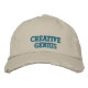 Distressed hat with embroidered caption: creative genius. Wear it with pride. Let them know who you are!
