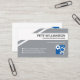 A creative grey geometric design with your prestigious name and job title in the upper white column. A slogan caption to publicise your services is just below the job title. This is followed by a blue power plug logo you can use. Contact details are located in their respective white buttons near the base of the card.