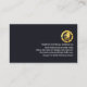A gold building electrical power line demarcates the upper blue from the lower darker layer. The gold line circuit powers up four gold electrical icons at the base of the card. Over at the top lies the business name and its contact details.