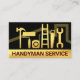Cover features a gold handyman tools design with a rooftop background. At the base of the card, in the faux gold layer lies the business name.