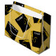 Unique graduation gift bag for your favourite class of 25 grad featuring creative black caps on gold background. To personalise edit text to add graduate's name and his or her senior class year.