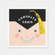 Creative graduation party napkins featuring cartoon grad in a classic black cap with a gold tassel. To personalise, edit text to add name of your favourite senior class graduate.