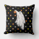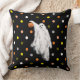 Funny Halloween pillow featuring creative trick-or-treating ghost holding a pumpkin.
