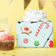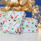 Creative lacrosse holiday gift wrap featuring Santa with a lax stick surrounded by Christmas treats.