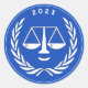 Law school graduate gift stickers, party favour labels or envelope seals featuring creative Scales of Justice personified. Edit text to change year of graduation or otherwise customise.