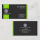 Design features two bright green squares with an embedded arrow in it at the upper and lower left corners of the card. It encapsulates your faux gold logo and its business name. Towards the right wall, there is another bright rectangle. It houses your name and job title at the top with all your business details at the bottom.