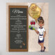 Personalise this menu on a rustic wooden panelling background with a cute waitress - I love cooking with wine - sometimes I put some in the food. and I love strong coffee.
