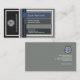 Overleaf, with a grey background, all the card's information are located at the right wall. Your logo is at the very top, followed by the business details and slogan tagline.