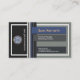 An elaborate creative design using signboard placards to store your details at the right face of the card. At the top blue placard is your prestigious name. In the grey column below is the job title with the contact details following suit. Over at the left wall rest the faux gold logo and its inverted business name.