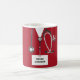 Creative nurse appreciation, birthday, or nursing school graduation keepsake gift mug, featuring red hospital scrubs. Edit text to add name.