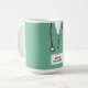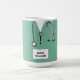 Nurse appreciation or nursing school graduation keepsake gift mug featuring hospital scrubs. Edit text to add name.
