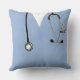 Unique nurse home or office pillow decor featuring blue hospital scrubs and funny Swiss Army knife. Creative medical-themed birthday or graduation gift for your favourite nurse, doctor, physician assistant, or other healthcare professional.