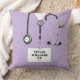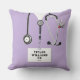 Unique nurse pillow design featuring hospital scrubs, a stethoscope, and a Swiss Army knife. Edit text to add name and professional credentials.