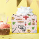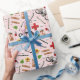 Unique medical-themed gift wrap featuring healthcare supplies and flowers pattern on pink background.