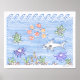 Creative Ocean Scene Line Art Poster - original and hand drawn. The drawing is made of one continuous line that does not cross over itself. Can you find the ends?