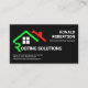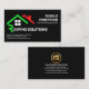 An all black cover features a creative green and red rooftop design. Just below the rooftop is a letter-R which can represent the business name or your prestigious name. Near the base of the card is the contact details. Moving towards the top corner you have your prestigious name and a slogan caption option to publicise your services. ; Change the caption remarks to the slogan to suit your own service needs.