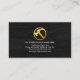 Near the base of the card is the business name, its contact details and a slogan option to publicise your services. Towards the upper right corner is a gold hammer logo you can use.