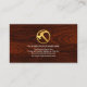 An exquisite timber wood cover features a creative roof top design. Over at the top left corner is a gold hammer logo you can use. Near the base of the card, beside the gold roller brush, lies the business name and its contact details.