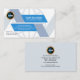 Over at the top there are three co-joined trapeziums that form a pathway to global success with your prestigious name and position leading the charge. The faux gold logo is towards its left. Directly underneath, the pattern is repeated in reverse, thereby forming a chain, that business will always be in abundance. Over in this space are the contact details and business name. At the bottom left corner, you have a slogan tagline to personalise your design.