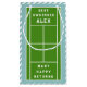 Funny tennis gift bag featuring court design and personalised line. To personalise edit text to add his or her name.