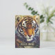 Wow friends and family with a modern, creative tiger invitation postcard. The front of the postcard features a tiger design with the phrase, "You're Invited." Details about the event are on the back along with a QR code. The QR code can be used for your RSVP, website (among others). Earthy colours. Custom tiger design. Use the template to personalise.
