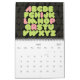 Customisable 2012 calendar with typography design featuring colourful alphabet letters. The letters that form each month's name are highlighted and form a fun pseudo-anagram to be discovered.
