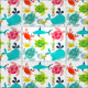 Cute, fun, colourful, great for kids or anyone who loves sea creatures, this fabric has a white background and lots of creatures from the sea including sea turtles of pink, green, and blue, blue whales with water spouts, crabs of red and yellow, and sea horses in rainbow colours!