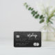 An elegant modern, stylish Hair and makeup artist credit card style business card with a modern script font typography on a chic glam black glitter ombre trendy background. all text is customizable, add your social media. Featuring faux silver stripe. Add your logo, your monogram and QR code.