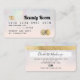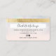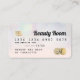 An elegant modern, stylish beauty Hair and makeup artist credit card style business card with a modern script font typography on a chic nacre pearl iridescent holographic ombre on pastel blush pink and gold metallic foil glam trendy background. all text is customisable, add your social media. Featuring faux gold stripe. Add your logo, your monogram and QR code.