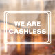 Window sign for cashless businesses with text "we are cashless". Great for stores and restaurants that are debit / credit card only.