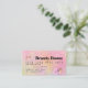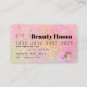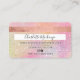 An elegant modern, stylish beauty credit card style business card with a modern script font typography on a chic faux pastel holographic glitter trendy background. all text is customisable, add your social media. Featuring faux rose gold stripe. Add your logo, your monogram and QR code.