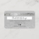 An elegant modern, stylish Hair and makeup artist credit card style business card with a modern script font typography on a chic faux gray silver glitter ombre gradient and glam gray trendy background. all text is customizable, add your social media. Featuring faux silver stripe. Add your logo, your monogram and QR code.