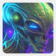 Creepy Alien Head with Glowing Blue Eyes Square Sticker
