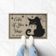 Creepy Black Cat Welcome Doormat: Welcome trick-or-treaters and guests with a spine-chilling twist using this rustic Halloween welcome doormat! Featuring the eerie phrase "Enter If You Dare" in a wickedly whimsical script, this design is complete with a scary black cat, creepy spiders, and cobwebs scattered across a rustic faux burlap background. Perfect for adding a spooky yet rustic charm to your doorstep, this doormat also includes a space for personalisation, making it a unique and festive way to greet guests. Whether you're hosting a Halloween party or just getting into the spooky spirit, this doormat is sure to catch attention! Ideal for Halloween home décor, personalised Halloween doormats, and rustic Halloween decorations.