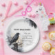 Celebrate Halloween in style with our Creepy Black Raven Happy Halloween Paper Plates. Dominated by a foreboding black raven perched on a gnarled, sinister branch, these plates capture the essence of Edgar Allan Poe's haunting classic. A chilling quote from "The Raven" sets the tone, while "Happy Halloween" is written in a creepy font, evoking a sense of spine-tingling suspense. These plates are perfect for your Halloween parties and gatherings. Elevate your Halloween festivities with these delightful paper plates that are sure to be a hit among your guests.